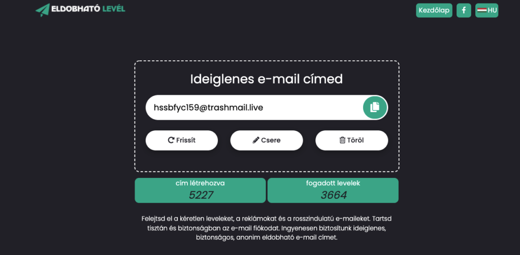 Itt már láthatod az e-mail címet, amit egy kattintásra tudsz másolni. Ezt az e-mail címet több napig is használhatod. Lejjebb görgetve pedig megnézheted, hogy milyen levelek érkeztek erre az e-mail címre.